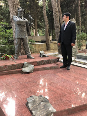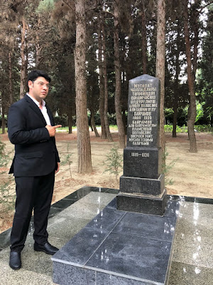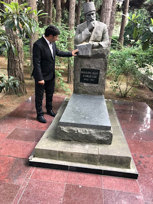 İlk ziyarətim, lap üstdə - başda Azərbaycan xəritəsinin önündə əzəmətli heykəli olan, Azərbaycan xalqının ümummilli lideri, 1993-cü ildə parçalnmaq təhlükəsi ilə üz-üzə dayanan, can verən Azərbaycanı yenidən quran, Yeni Azərbaycanın memarı Heydər Əliyevin məzarı olur. Hər zamankı kimi məzarın önündə bayrağımız üzərində "Azərbaycan Respublikası Prezidentindən" sözləri yazılmış gül çələngi, bir nəfər də hərbi geyimli əsgər var. Vaxt gələcək, bütün cəmiyyət anlayacaq ki, Heydər Əliyevin hələ, Sovet dönəmindən Azərbaycana xidmətləri tarixə sığmayacaq qədər böyükdür. Bu dahi siyasətçi parçalanmaq təhlükəsi ilə üz-üzə dayanan vətənə yeni - azərbaycançılıq ideyasını gətirməklə, Azərbaycanı bu ölkədə yaşayan hər bir vətəndaşın doğma vətəninə çevirdi, hər kəsi dövlətimizin üç rəngli bayrağı altında birləşdirdi.