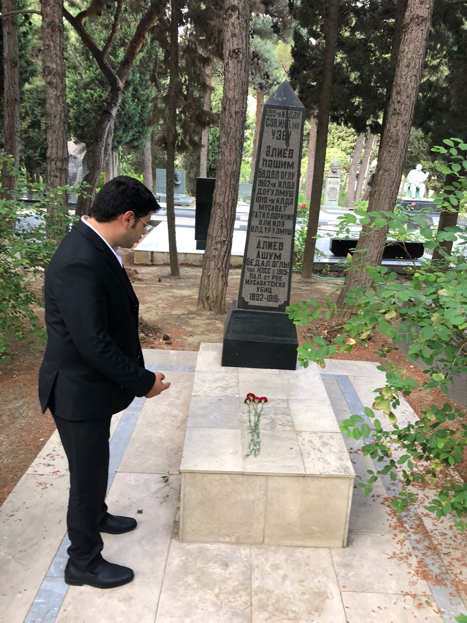 Maraqlı idi, Cümhuriyyətimizin 100 illik yubiley ərəfəsində kim bu gülləri gətirib, bu qəbir daşına bağışlamışdı?! Hər halda, o adam Bakıda yaşayır, işləyir və Fəxri Xiyabana gəlib, gül çələngləri bağışlanası məzar daşları olduğu halda, bu gülləri Azərbaycanın Milli Hökümətinin devrilməsində xidmətləri olanlardann birinin məzarına qoymuşdu...