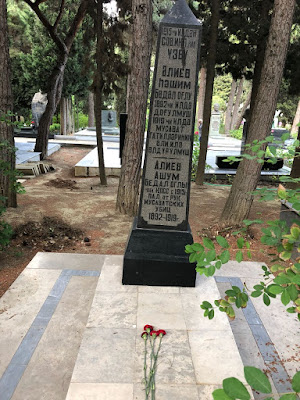 Məni bu xiyabanda ən çox təəcübləndirən isə Milli Hökümətimizə qarşı olub, ruslara xidmət edən bu vətən xainlərindən birinin - Əliyev Həşim Bədəl oğlunun üzərinə qoyulan dörd ədəd qərənfil oldu...